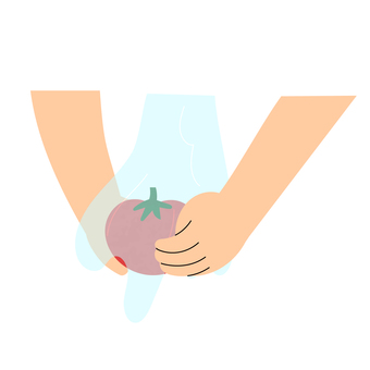 トマトを流水で洗うイラスト