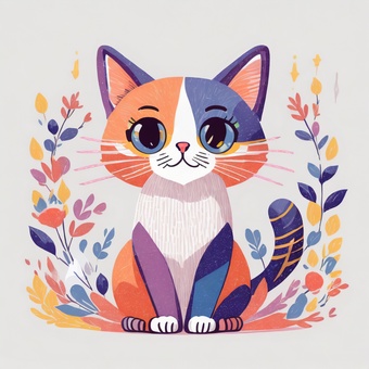 鮮やかでクリエイティブな猫のイラスト