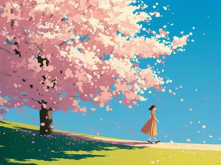 桜の木の下の女性
