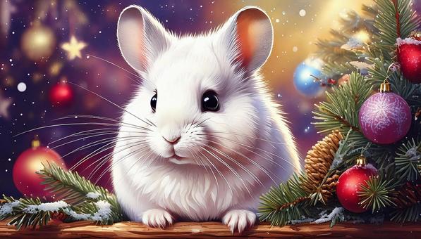 クリスマスの飾り付けの中のチンチラ