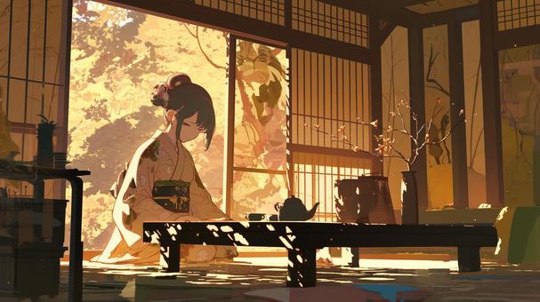 秋風に染まる茶室