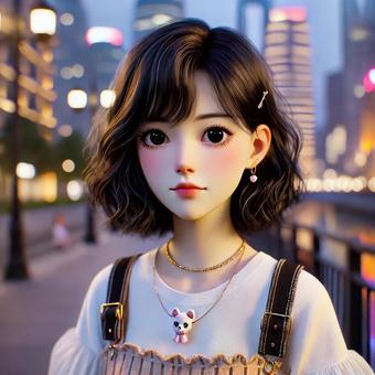 黄昏時の都市に佇む美少女