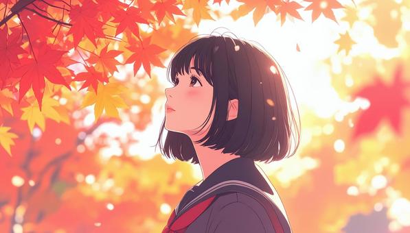紅葉を見上げる少女