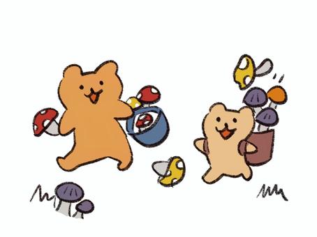 きのこ狩りをするくまさん