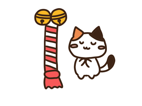 初詣でお願い・お祈りをするかわいい三毛猫