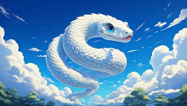 空に浮かぶ雲が可愛い蛇の形のイラスト