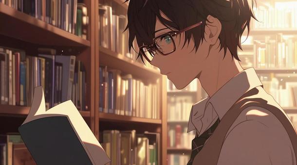 本棚が並ぶ図書館の風景画_本屋さん_学校