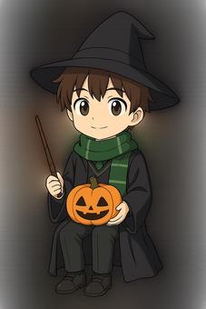 緑マフラーのハロウィン魔法使いくん
