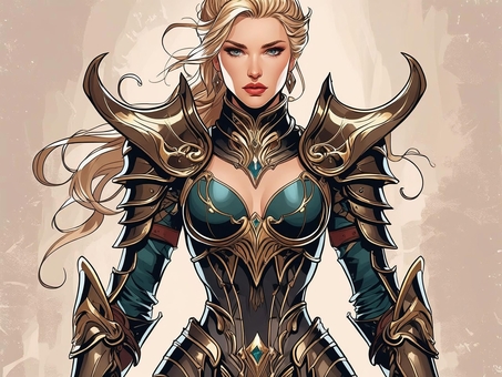 豪華な鎧を身に着けた美しい白人女性