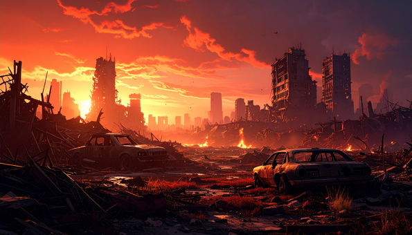 廃墟 荒廃した都市 夕日 背景素材