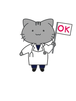 OKをだす医者ねこのイラスト