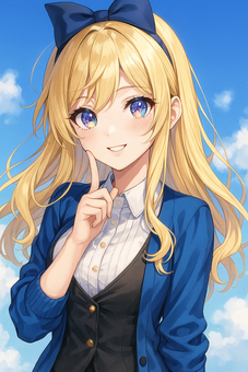 オパールの瞳 青空とリボンの金髪少女