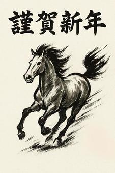 午年謹賀新年墨絵