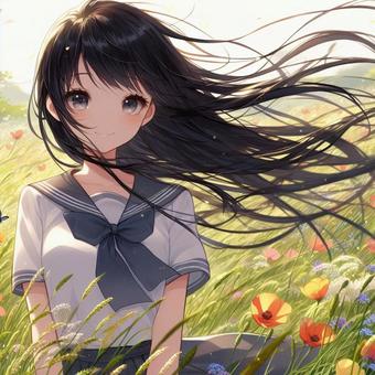ロングヘアーの笑顔の少女