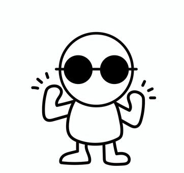 丸サングラスの白い人が気合いを入れる