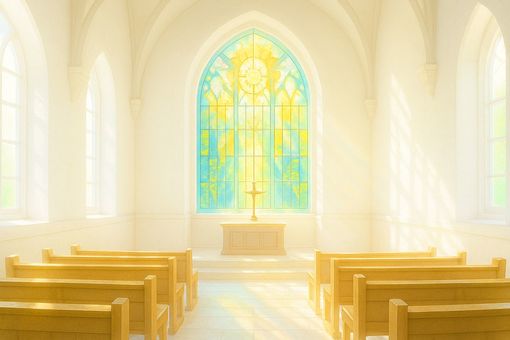 ステンドグラスと花に彩られた礼拝堂_背景