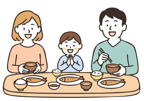 いただきますをする家族の食卓