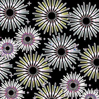 カラフルな提灯と花火の夏祭り・縁日の夜