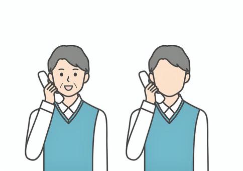 ポロシャツ姿の介護福祉士・先生の男性女性