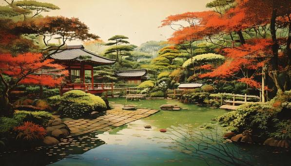 渓谷の鮮やかな紅葉と清らかな渓流_背景画