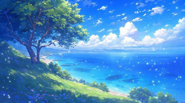 光輝く可憐な花々が咲く瑞々しい草原_背景
