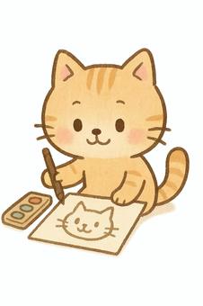お絵描きする猫