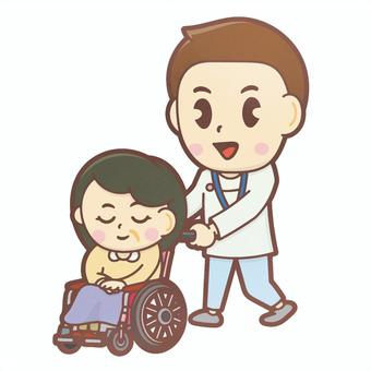 車椅子の女性と男性介護士