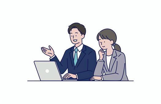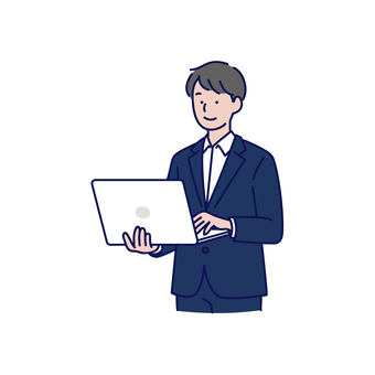 パソコン作業で喜ぶ男性ビジネスイラスト