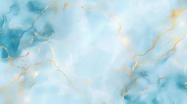 青・水色・ゴールドの美しいマーブル模様