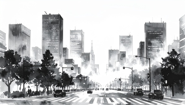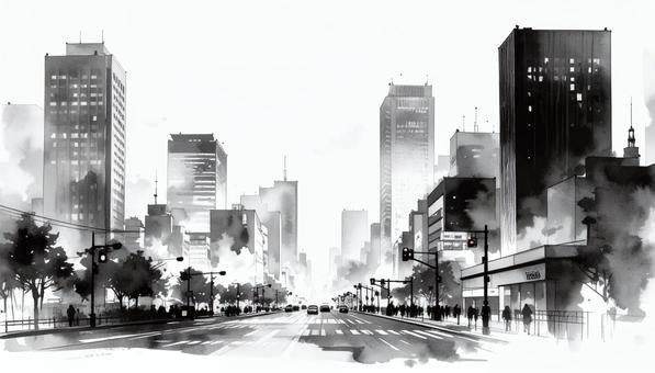 水墨画風都会の街並み