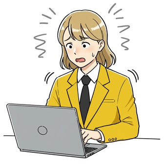 パソコンの前で焦る姿