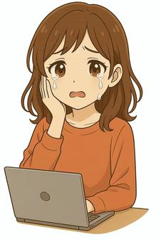 パソコン作業で涙を流す女性のイラスト