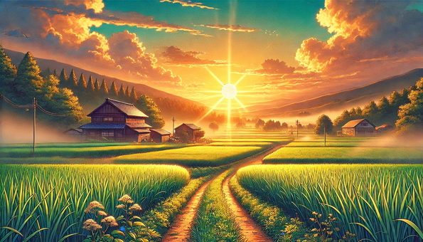黄昏時のお天気雨が降る田舎町の歩道_背景