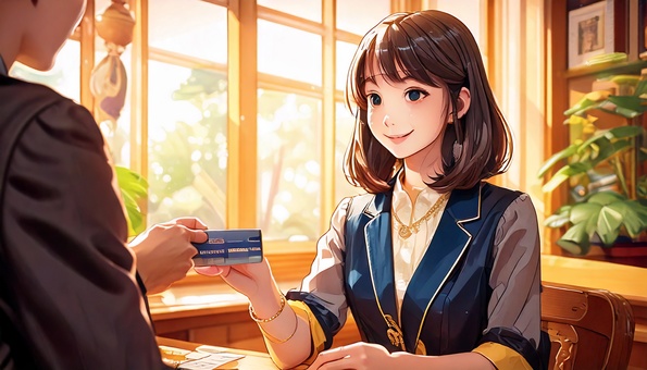 クレジットカードを店員に手渡す日本人女性