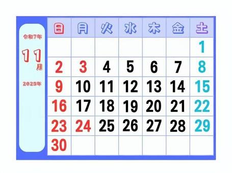 2025年11月カレンダー大文字日曜始り