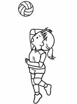 線画*バレー女子*アタック