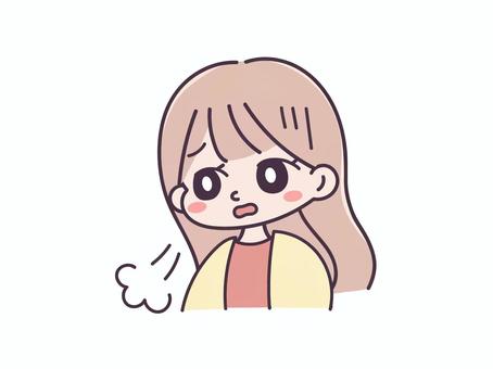 不機嫌そうに何かを伝える紫ヘアのシニア