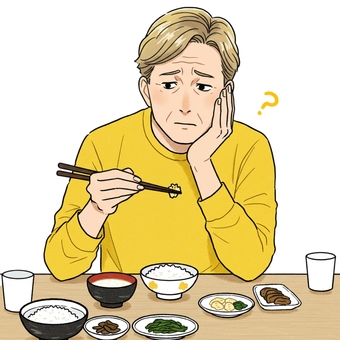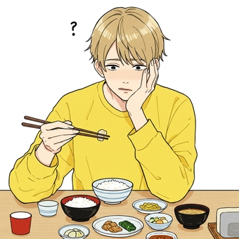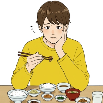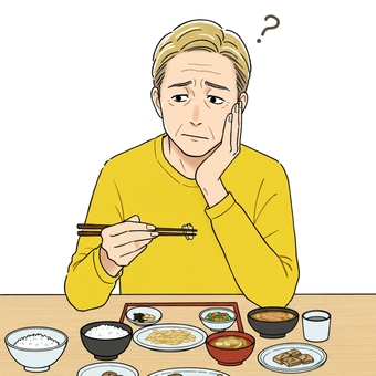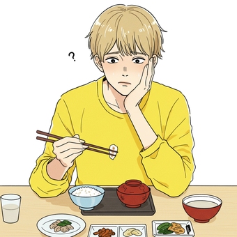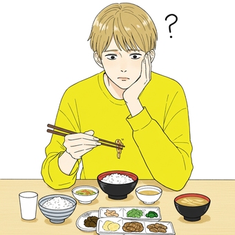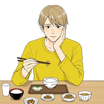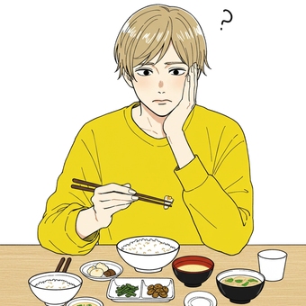 焼き鮭定食を食べる男性