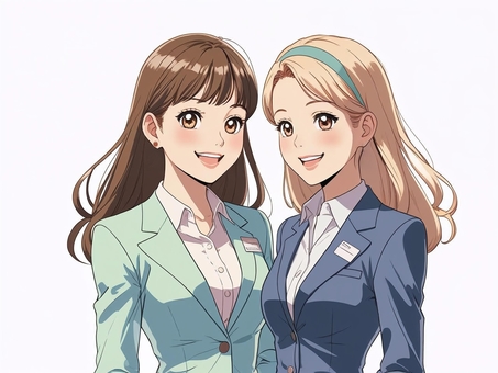 白背景に若く美しい二人の女性社員