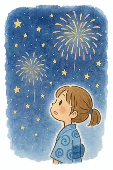 花火を見上げる女の子