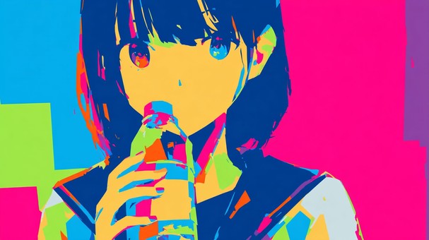 ヘッドホンをつけたポップな女の子
