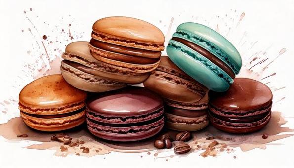 カラフルなマカロンの水彩イラスト