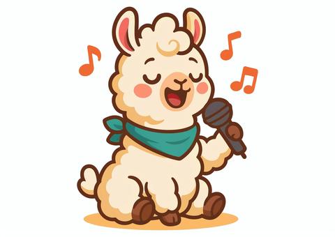 マイクで歌うラマのキャラクターイラスト