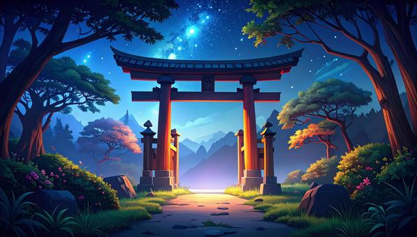 夕霧漂う黄昏時の古木の森の幻想風景_背景
