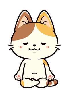 瞑想でリラックスする可愛い三毛猫