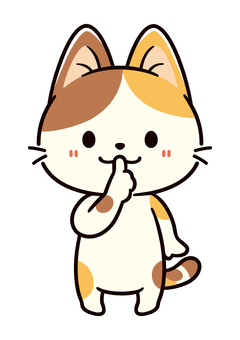 しーっと指を立てこちらを見る可愛い三毛猫