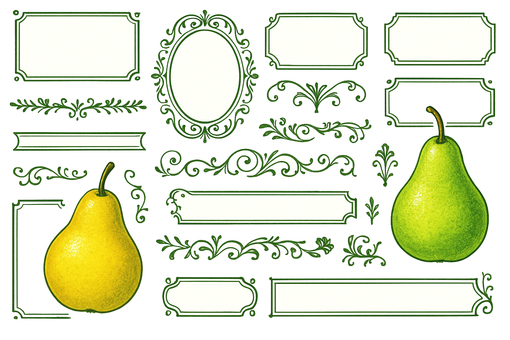 レトロなフレームと洋梨素材集 透過済