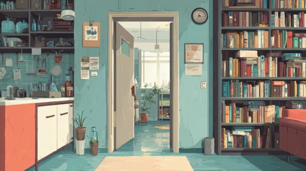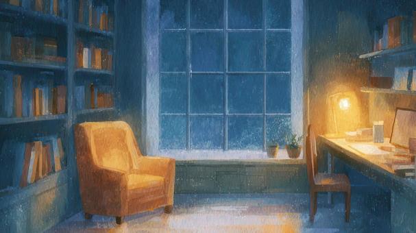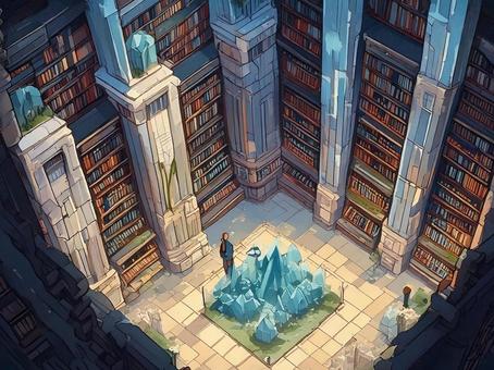 本棚が並ぶ図書館の風景画_本屋さん_学校