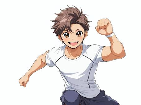 笑顔で走るたくましい少年