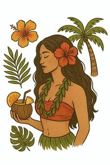 トロピカルな女性とココナッツドリンク